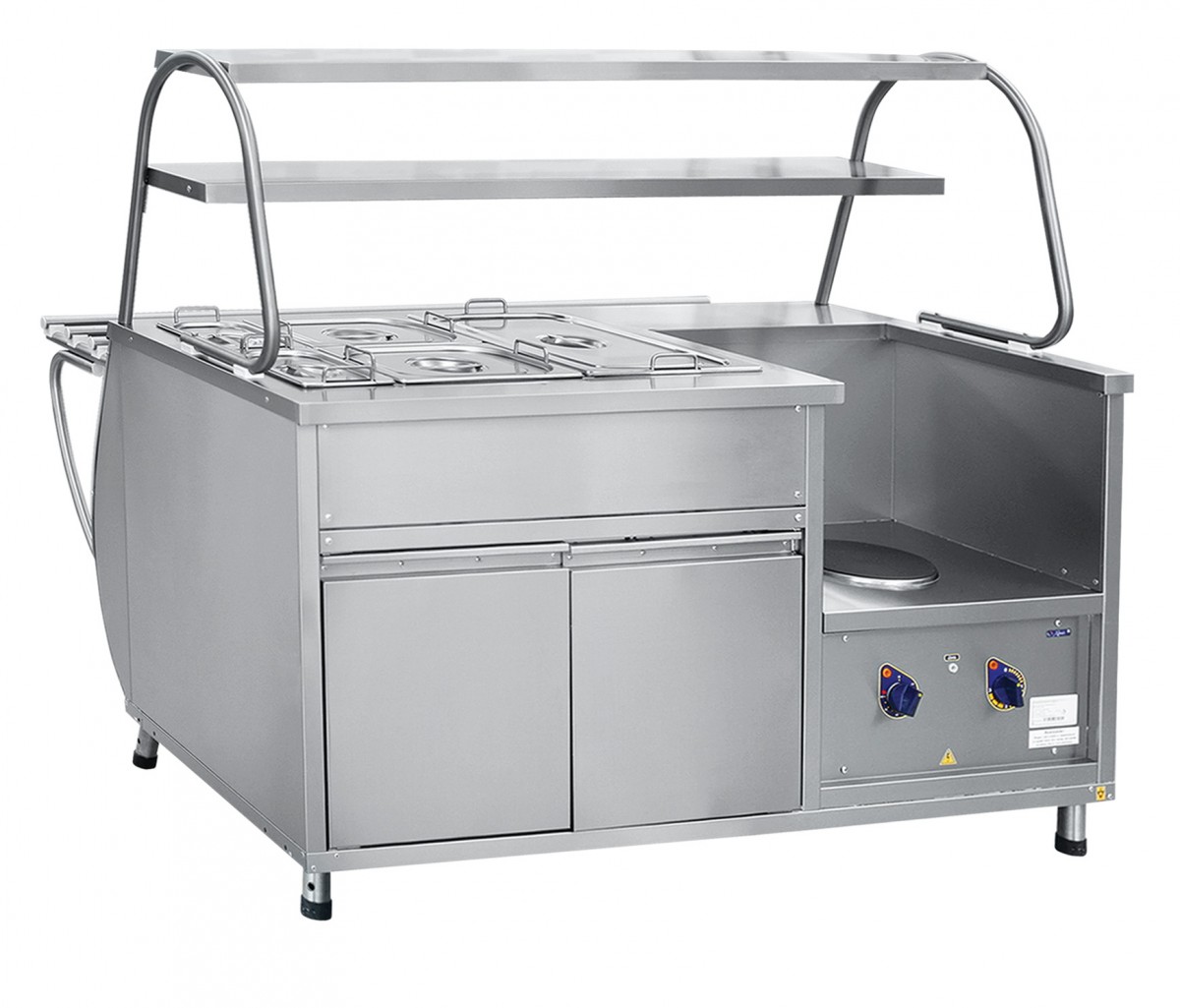 Мармит электрический кухонный универсальный предназначен для кратковременного хранения в горячем состоянии первых блюд в котлах и вторых блюд в функциональных емкостях и раздачи их потребителю.