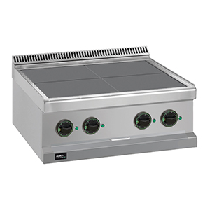 Электрическая 4-конфорочная плита с низкими конфорками 700 серии APRE-77QT предназначена для приготовления различных блюд в наплитной посуде.